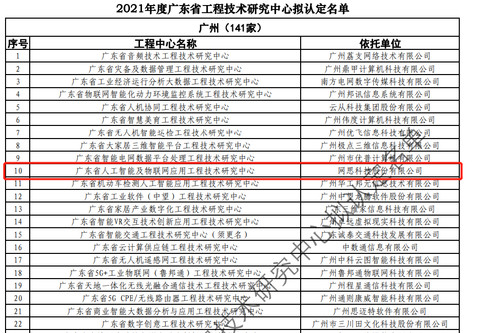 日前,广东省科技厅发布2021年度广东省工程技术研究中心名单。经过层层筛选、专家评审,依托世界杯官方端网站登录入口_世界杯(中国),建设的“广东省人工智能及物联网应用工程技术研究中心”榜上有名。广东省工程技术研究中心主要依托省内行业、领域具有科技实力的、拥有一定规模以上创新型企业建设,部分依托高校和科研院所组建。工程中心旨在